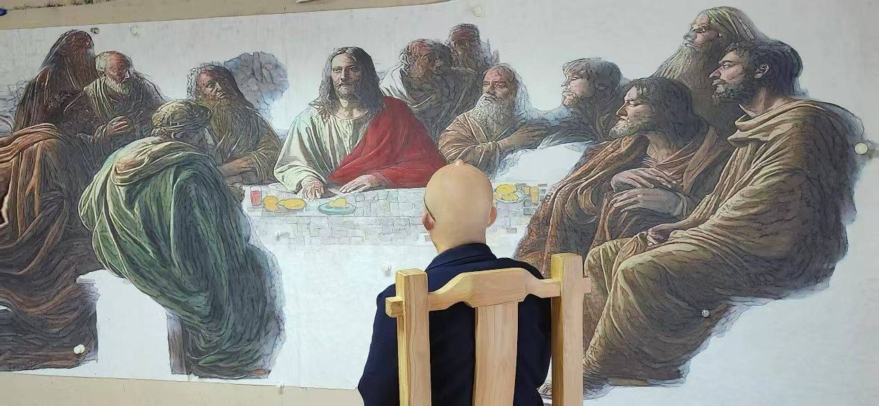《临了的晚餐》 纸本设色 144x367cm 2024-2025 梵蒂冈历史与艺术遗产保护委员会储藏