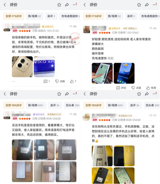 现时,仍是有不少京东用户为父母购入了大屏AI手机,也成绩了不少好评,全国纷纷留言示意“绝顶有质感”“屏幕够大”“操作随意”“语音和打电话声息大”等。